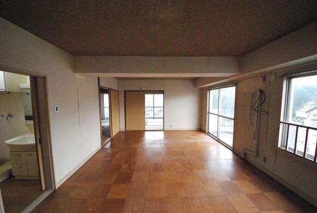 青山スカイハイツ。間取り広々の5LDK。角部屋の2面バルコニーで、日当たり良好。高台の6階で眺望良好。筑豊電鉄熊西駅まで徒歩11分で、交通アクセス良好の立地。ドンキホーテイオン黒崎など、周辺商業施設充実で買物に便利です。